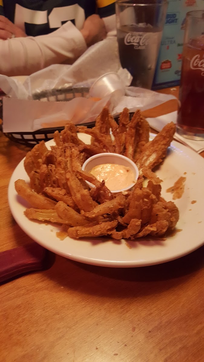 We took a friend of ours here for her birthday. We waited FOREVER for our drinks. We had to remind her to bring us rolls. Then we asked for regular butter BEFORE she got the rolls and we had to remind her twice about that. Our drinks ran out a few times. The food was really good though. The steaks were awesome and the appetizers were so good!! We got a bloomin onion and mozzarella sticks and they were so good!! I’m really sad about the service though. She was nice but definitely needs a lot more training.